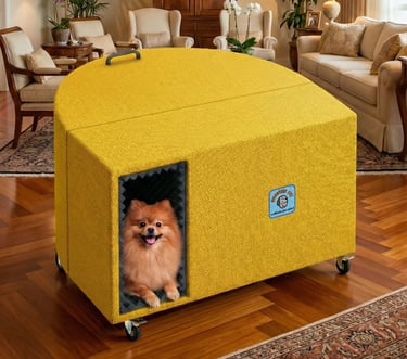 Projetada para criar um ambiente silencioso e acolhedor, protegendo seu pet dos barulhos que mais causam sofrimento: fogos de artifício, trovões, buzinas, obras e tantos outros ruídos que geram medo, estresse, traumas – e, em casos extremos, até risco de morte do pet.